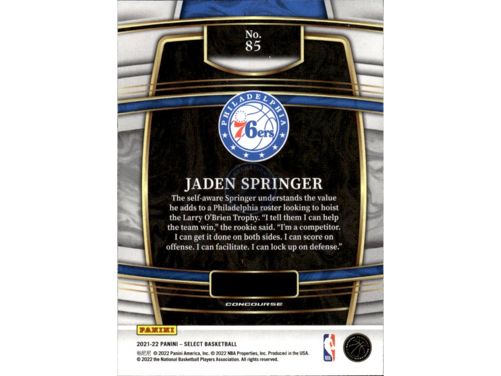 2021-22 Panini Select Jaden Springer Philadelphia 76ers Concourse Level RC #85
