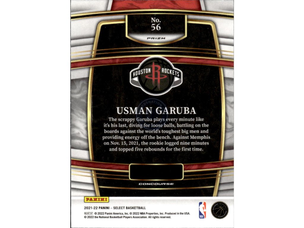 2021-22 Panini Select Usman Garuba Houston Rockets Concourse Level Blue Shimmer Prizm Parallel RC #56