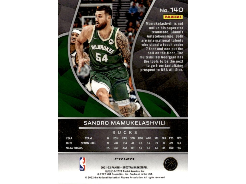 2021-22 Panini Spectra Sandro Mamukelashvili Milwaukee Bucks RC Asia Green Parallel #140
