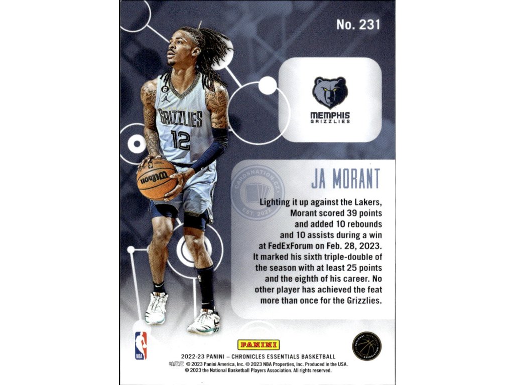 2022-23 Panini Chronicles Ja Morant Memphis Grizzlies Essentials Pink Parallel #231