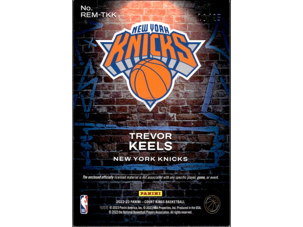 Memorabilia kartička NBA Trevor Keels New York Knicks v limitu 18/25.