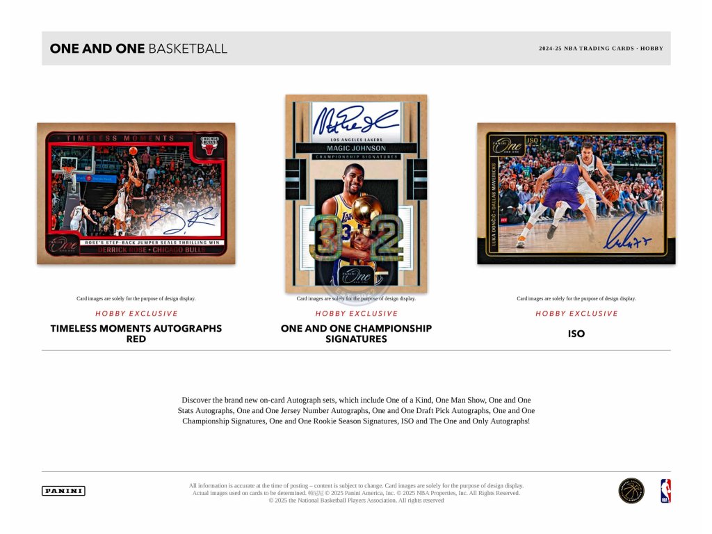 Nově můžete nají ON-CARD podpisové sety One of a Kind, One Man Show, One and One Stats Autographs, One and One Jersey Number Autographs, One and One Draft Pick Autographs, One and One Championship Signatures, One and One Rookie Season Signatures a The One and Only Autographs.