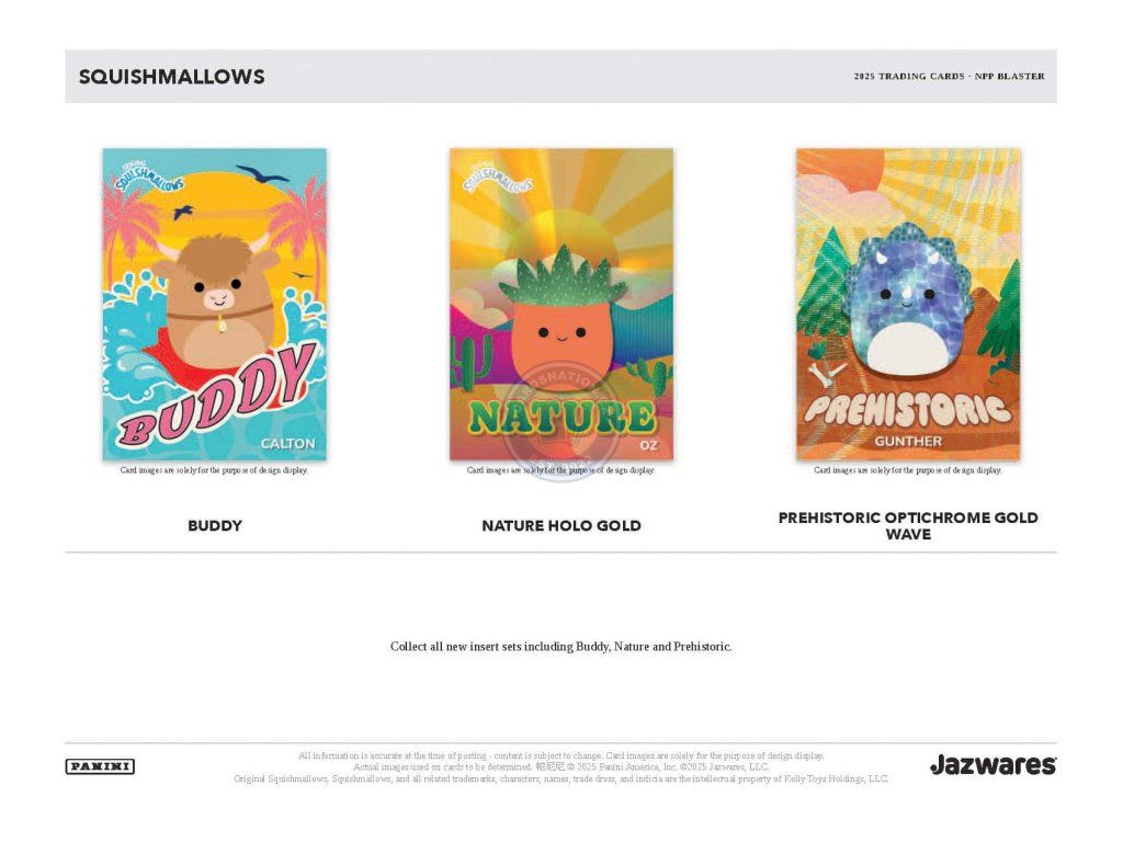 Kolekce nabízí také zcela nové insertní sety – Buddy, Nature a Prehistoric, které rozšiřují svět Squishmallows o další tematické kategorie.
