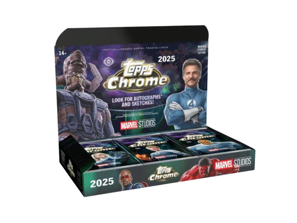 2025 Topps Marvel Studios Chrome přichází jako vůbec první produkt Topps věnovaný ikonickému Marvel Cinematic Universe. Tato průlomová edice oslavuje superhrdiny, padouchy, akci i emoce, které definovaly filmové plátno, a to vše v kombinaci s oslnivou chrome technologií, výrazným designem a nostalgickým vyprávěním.